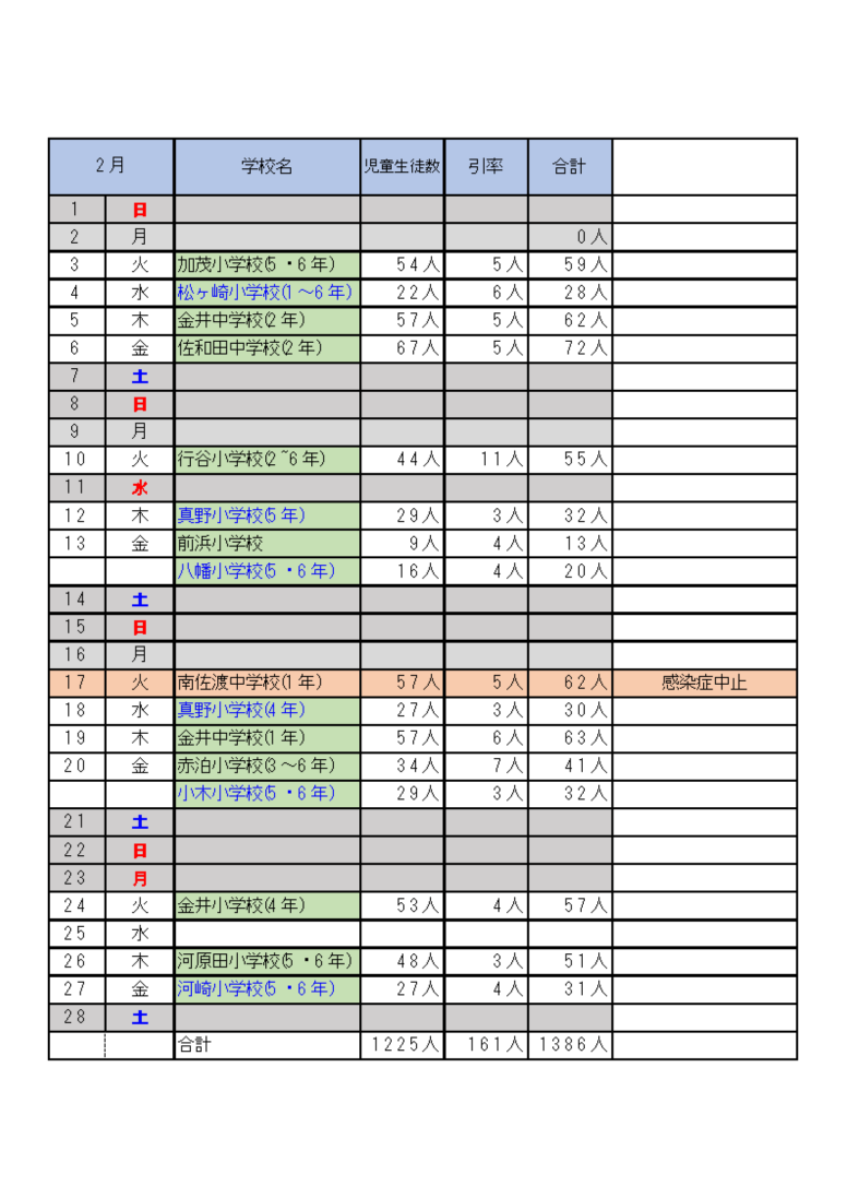 その中で荒天・感染症のため中止が2クラスありましたが、1136名の児童がスキー体験をすることが出来ました。