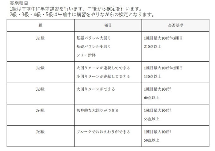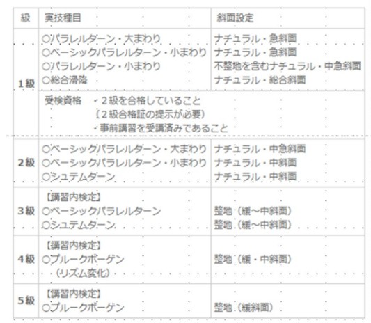 全日本スキー連盟の検定員資格を取得した検定員が複数名でジャッジをします。