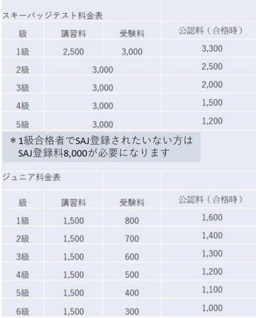 全日本スキー連盟(SAJ)のバッジテスト(級別テスト)はスキー技術を点数で判定するものです。